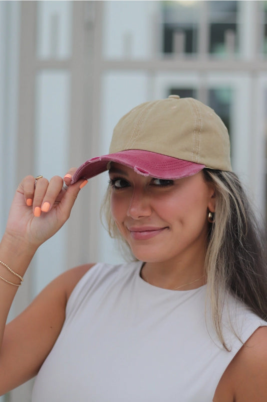 Beige and faded Burgundy Cap